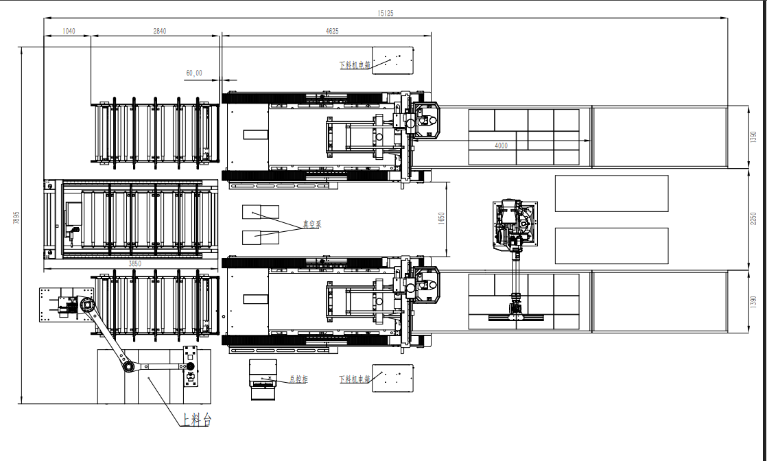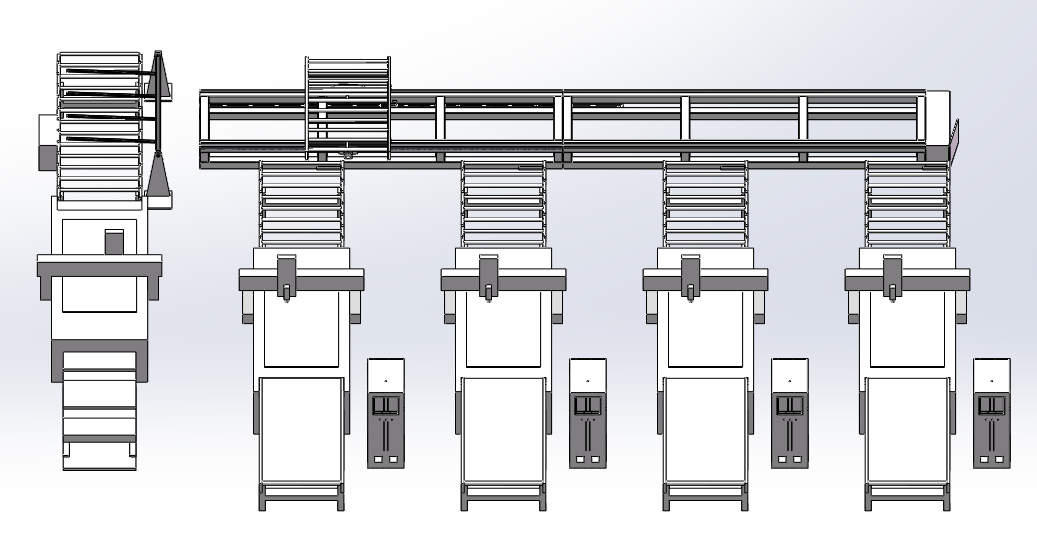 Общая схема производственной линии выглядит следующим образом: Загрузка портала – Маркировочная машина – Маркировка – Автоматическое распределение по обрабатывающим машинам с помощью интеллектуальной системы распределения на основе шкафов – Подготовка машины – Резка – Завершение обработки и перемещение на разгрузочную платформу – Извлечение роботизированной рукой.